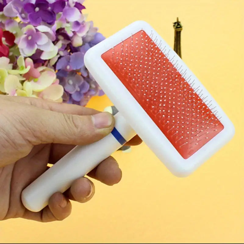 At PawGrower.Store discover the Plastic White Brush for Cats and Dogs. Introducing our Plastic White Brush in Pack, a sleek and effective slicker pet brush designed for both long and short-haired pets. The stainless steel extra-long pins provide a gentle yet thorough cleaning experience, removing mats, tangles, and loose hair while massaging your pet’s skin. The dual-effects of cleaning and massaging make bath time an enjoyable ritual for your dog. With an ergonomic design featuring a comfort-grip and anti-slip handle, this brush ensures easy and strain-free grooming sessions. Experience the joy of bonding with your pet as they relax under the soothing motion of this versatile and easy-to-clean brush.