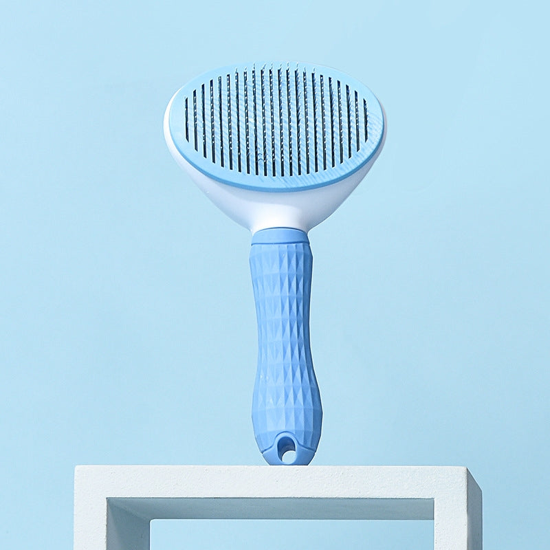 At our store you discover the Round Button Brush for Cat and Dog. Introducing our revolutionary Auto-Cleaning Pet Hair Brush, a grooming essential for cats, dogs, small animals, and even bears. This brush, suitable for both wet and dry use, features a one-click cleaning mechanism—simply press the button for efficient hair release. Crafted with gentle round-tip bristles, it caters to pets with sensitive skin. The comfortable curved handle ensures extended grooming sessions. With a stainless steel, skin-friendly needle head, this brush offers a massage function, promoting relaxation. Ideal for all pets, it controls shedding, keeping your home pristine while pampering your furry friends.